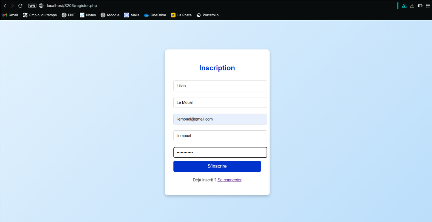 Ce projet m'a appris les bases du développement back-end et à structurer un site. Je suis capable de créer un formulaire, un système de connexion et un lien avec une base de données.